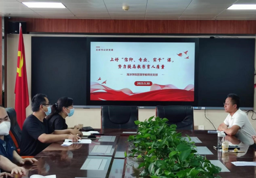 按照海洋公司党总支关于深入学习贯彻习近平新时代中国特色社会主义思想主题教育的计划安排,5月30日下午,qm球盟会管理学教师党支部书记周顺奎在qm球盟会院会议室为支部全体党员讲授了一堂主题教育专题党课,题目是《上好信仰、专业、实干课,努力提高教书育人质量》。