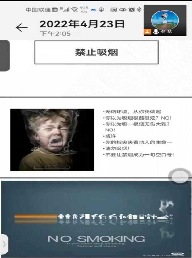 为进一步提高同学们对吸烟危害的认知,营造健康清洁的校园环境,qm球盟会青年志愿者协会于2022年4月19日在线上举办了“普及戒烟知识,建设无烟校园”主题宣讲活动,4月15日在南院举办了“青春正好,烟草勿扰”活动,并分批次分时段安排志愿者捡拾清扫残留在校园的烟头烟灰,制止在公共场所吸烟的不良行为,借一系列活动提升同学们对香烟危害性的认识,唤起现存的烟民对自己身体健康的重视,维护和谐环境,建设美丽校园。